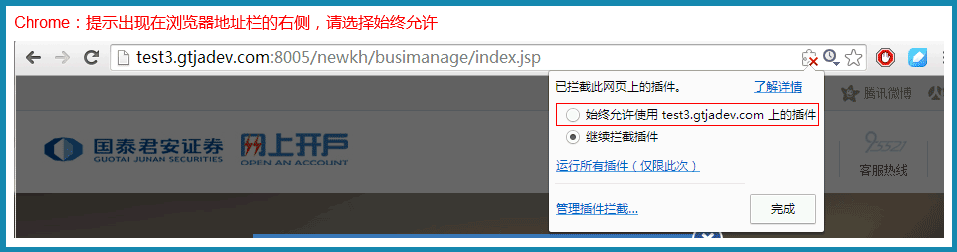 2、是否在当前页面出现此网站需要运行加载项的提示?如出现,请选择允许。查看示例